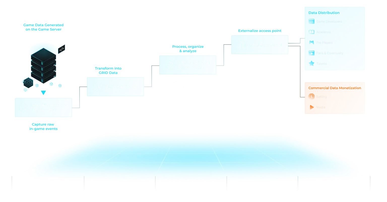 GRID’s technology seamlessly and securely extracts in-game data from your events with zero impact on production, making it available to GRID’s network of over 350 data customers and products on your behalf.