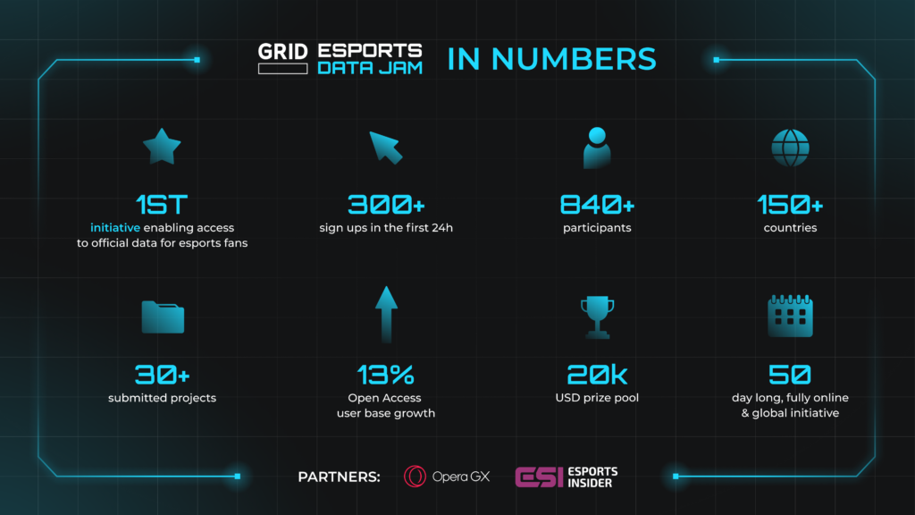 Last year, in partnership with Opera GX and Esports Insider, GRID hosted the first-ever Esports DataJam, inviting the developer community (840+ registered participants!) to come together digitally and build projects with Open Access data.